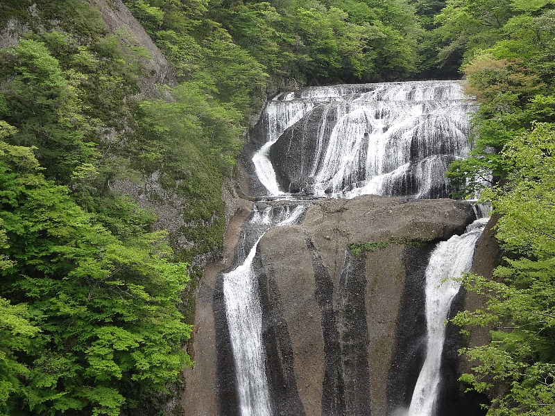 ここは茨城県福島県の連続した花崗岩地質によるせいか、岩肌が純粋な花崗岩部分と、まるで筑波山近辺にあった小さな岩石が固まって一つの岩のように見える「さざれ石」部分があり、そのさざれ石質の岩肌を流れ落ちる水が、細かな空気の層を含み、白く絹糸のように流れる、確かに他の名瀑といわれる滝とありようとは違う、何か高貴な感じのする名瀑でした。