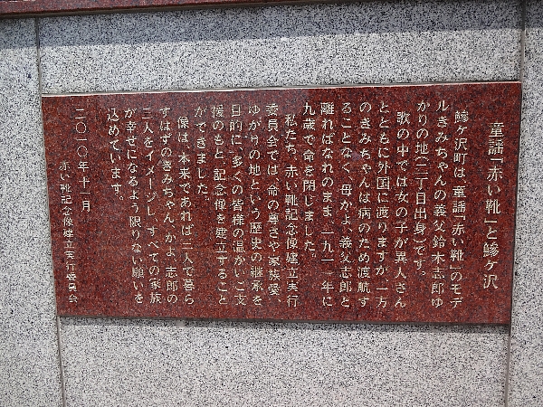 また横浜と鰺ヶ沢の他に、赤い靴の女の子の像はアメリカカリフォルニア州サンディエゴ市、静岡県日本平市、東京都麻布十番、北海道留寿都村、北海道小樽市、北海道函館市とそれぞれその物語の登場人物にちなんだ各地にあるそうです。