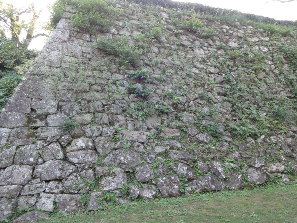 石垣は他の四国のお城や、有名な大阪城などの石垣も硬い御影石で作られていますが、こちらの石垣は砂岩や安山岩、蛇紋岩などこの近くの石を集めたようです。