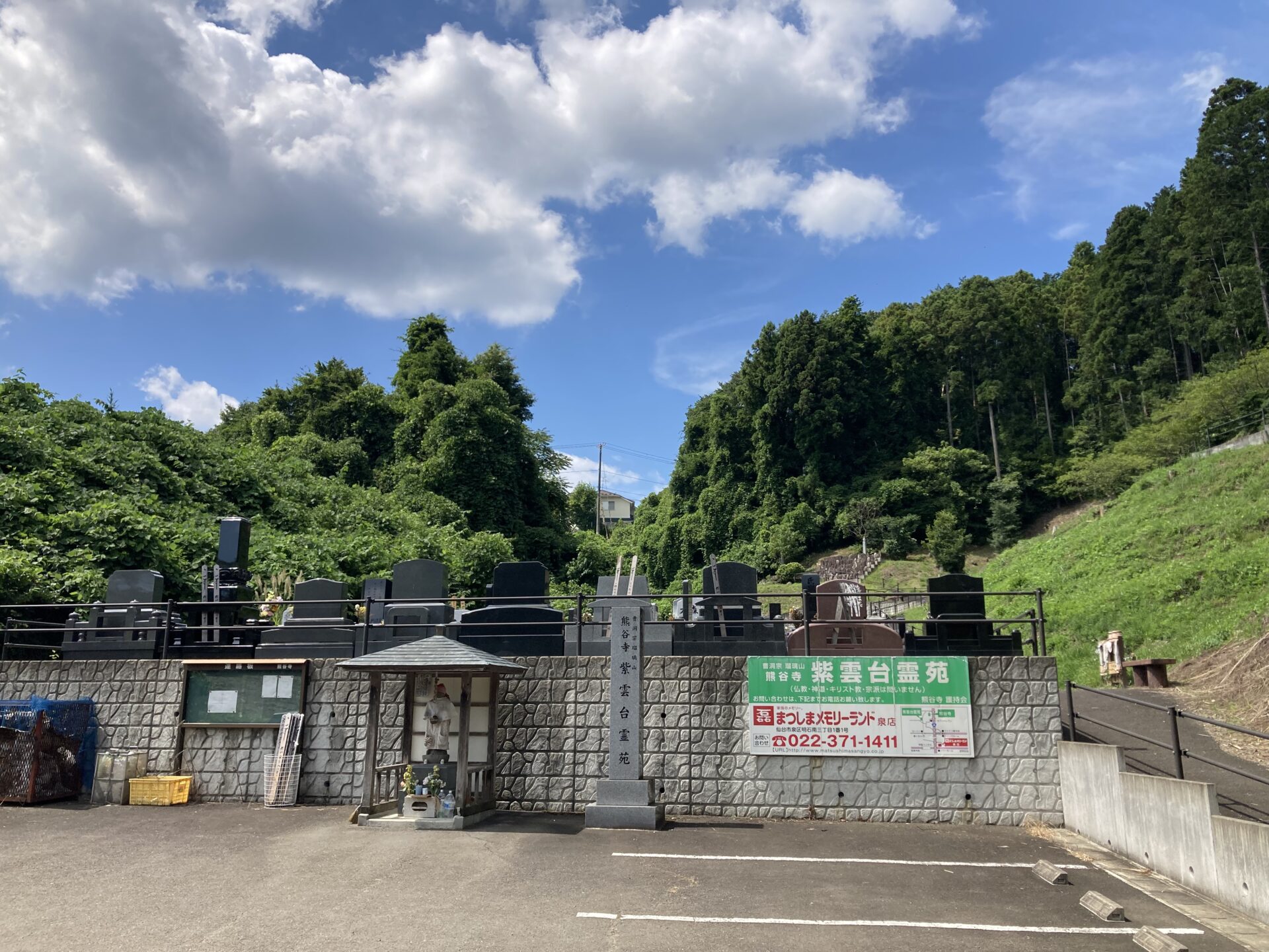 紫雲台霊園 紫雲台霊園 一般墓 富谷市 駐車場あり宗旨・宗派不問総区画数130区画特色富谷市にある共同墓地ですが、近隣の仙台市泉区にお住まいの方も申し込むことができます。 宗教にこだわりのないとても貴重な自由墓地です。永代使用料1区画 30万円~45万円所在地宮城県富谷市富谷新田20-2最寄駅地下鉄南北線「泉中央駅」から車で約15分お車東北自動車道「泉I.C」から車で約10分墓地内写真