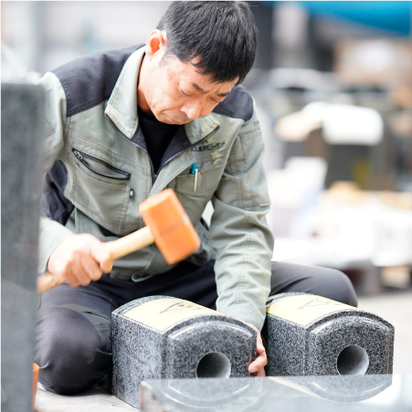お客様の「安心」を何よりも大切にするため、墓石の設計から仕入れ、製作、彫刻、建立に至るまで、私たちはすべてを自社一貫管理体制で行っています。これは現代の墓石店では珍しい体制ですが、お客様の信頼と安心を守るために必要不可欠であると考えています。