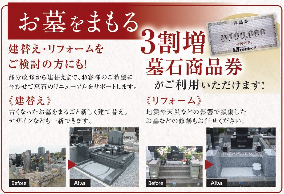 建替え・リフォームをお考えの方も【3割増墓石商品券】がご利用いただけます!
