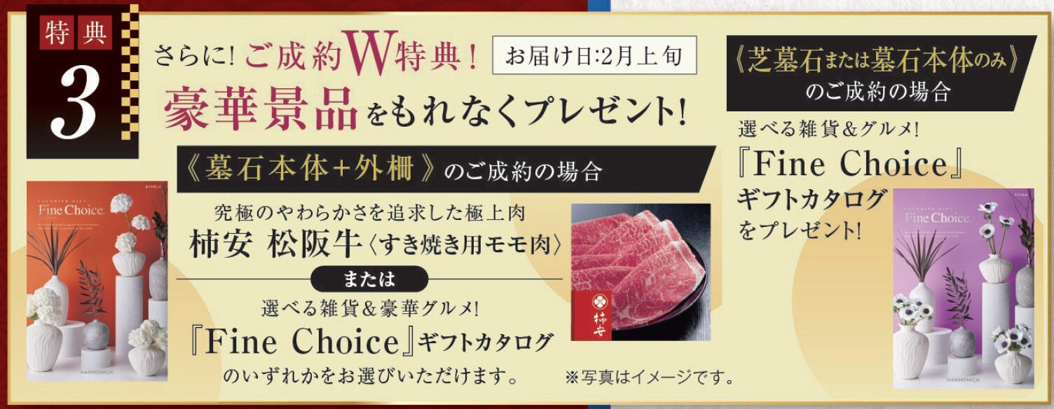 柿安の松阪牛 or ギフトカタログ、のどちらかをプレゼント!〇【 芝墓石または墓石本体 】をご成約の方