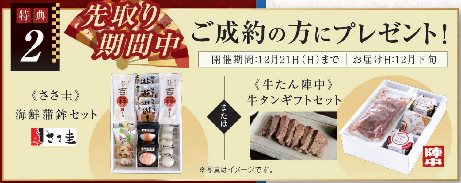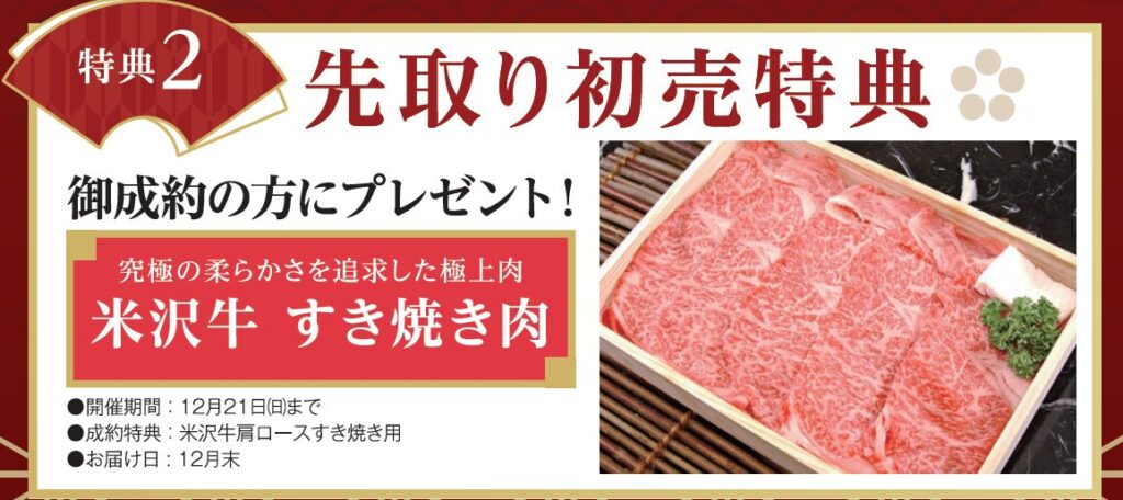 上記特典に加えて更に、初売先取り期間中にご成約いただいた方全員に豪華景品をもれなくプレゼントします!